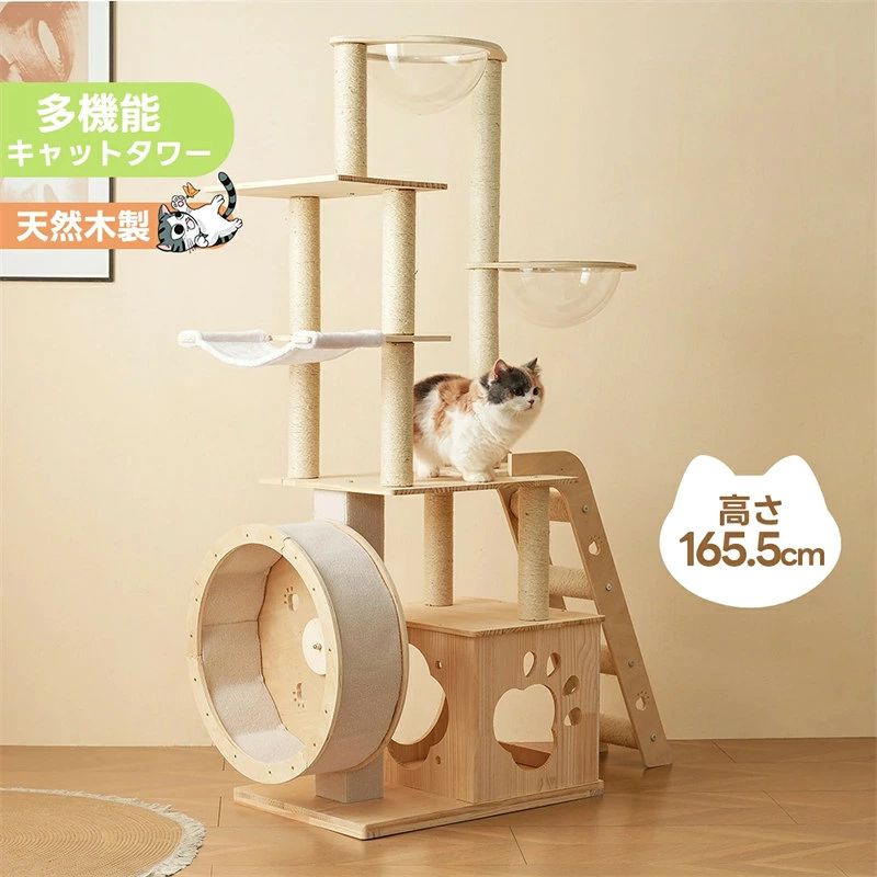 キャットタワー 超大型 木製 透明宇宙船 隠れ家 据え置き 頑丈 おしゃれ キャットタワー 木製 大型 可愛い麻紐 猫ベッド 安全安心 ペット用品 大型猫 子猫 運動不足解消 省スペース