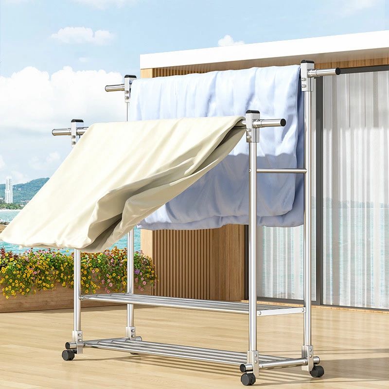 【送料無料】ハンガーラック ステンレス パイプハンガーラック キャスター付き 大容量 洗濯物干し 室内物干し コンパクト収納 物干し スタンド 洋服ハンガー 衣類収納 棚付き 縦横伸縮 高さ調節可能