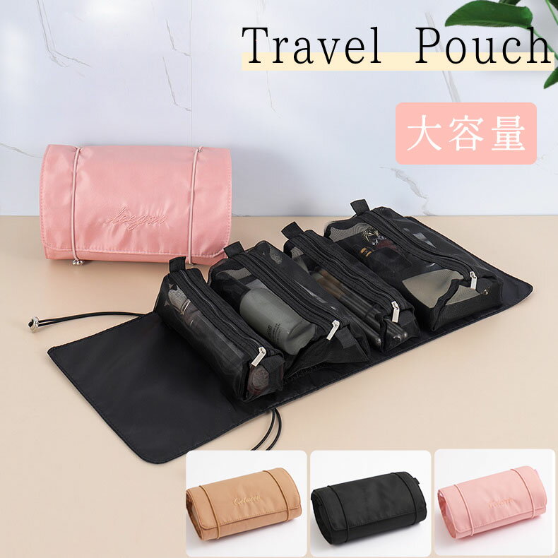 布団収納 トラベルポーチ 圧縮 旅行収納ポーチ フックトレイタリーバッグ付き パッキングポーチ 旅行収納バッグ 洗面用具 下着収納 吊り下げ 折りたたみ 衣類仕分け 旅行 便利グッズ