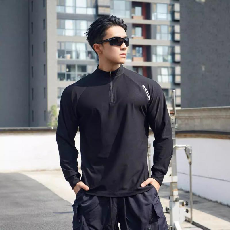 Tシャツ メンズ バスケットボール トレーニングウェア 長袖 スポーツウェア ハーフジップ スタンドカラー トップス カットソー コットン混紡 吸湿速乾 運動着 スタイル 春秋