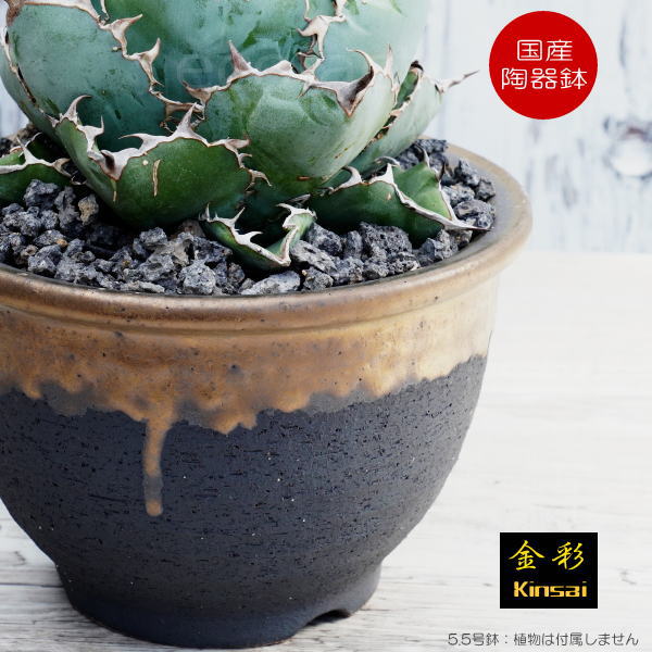 植木鉢 おしゃれ 陶器鉢 5.5号 室内 底穴あり フチ φ16.5cm 金彩 ゴールド ブラック かみ山陶器 信楽焼 プランター 園芸鉢 アガベ サボテン 多肉植物 塊根植物 コーデックス