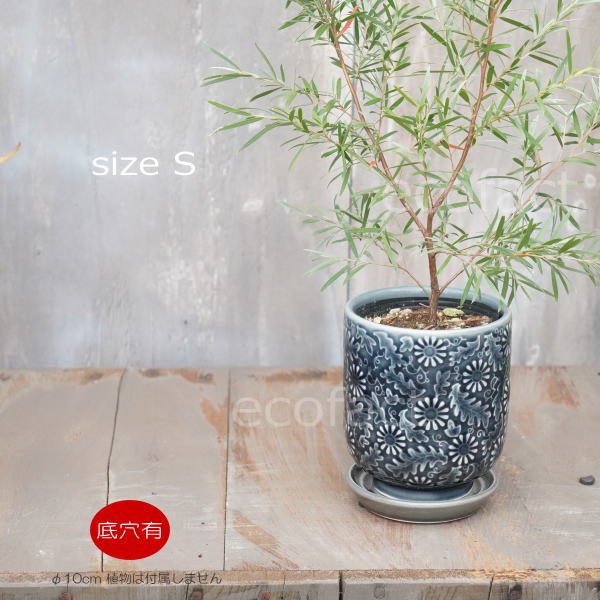 植木鉢 おしゃれ 陶器鉢 小型 3.5号相当 室内 受け皿付き 底穴あり ソルフロルS φ10cm 黒 花柄 モダン プランター 熱帯植物 アロカシア フィロデンドロン ガジュマル
