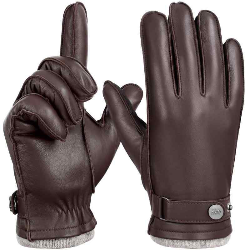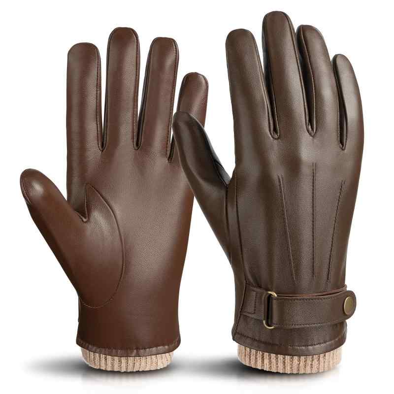 [JOOFAN] 手袋 メンズ バイク グローブ 革 スマホ対応 通勤 通学 自転車 プレゼント 冬 レザー 男性 羊革 裏起毛 ウール 防寒 防風 ブラック 柔らかく 本革 肌触り良い