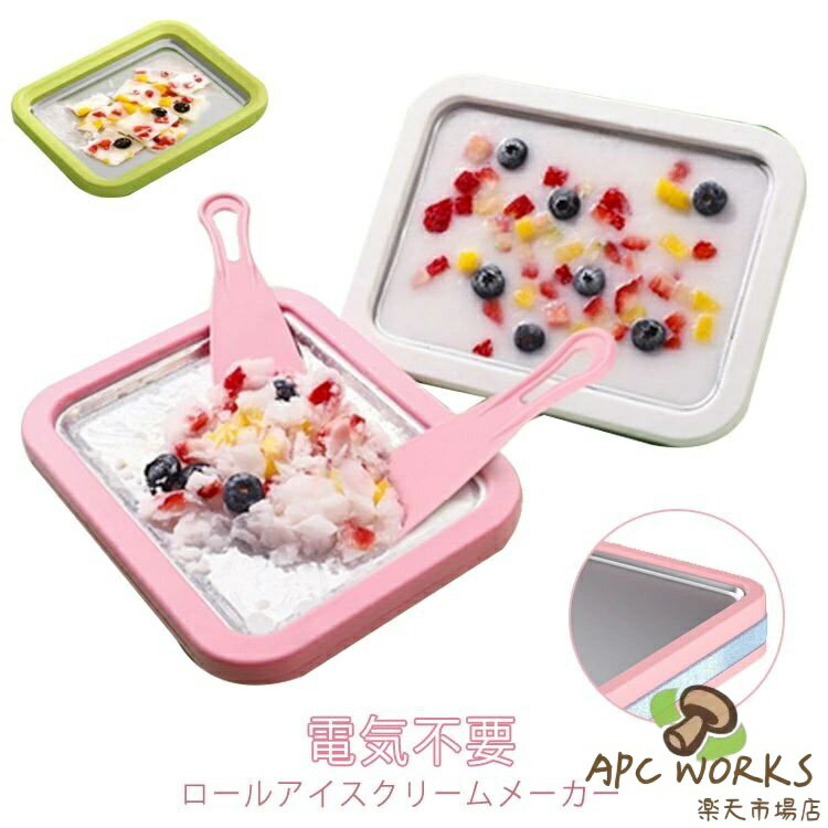 新作 アイスクリームメーカー 電気不要 304ステンレス製 イスクリームメーカー シャーベットメーカー ジェラート ロールアイス プレート ヘラ付 子供 家庭用 ホワイト ピンク グリーン