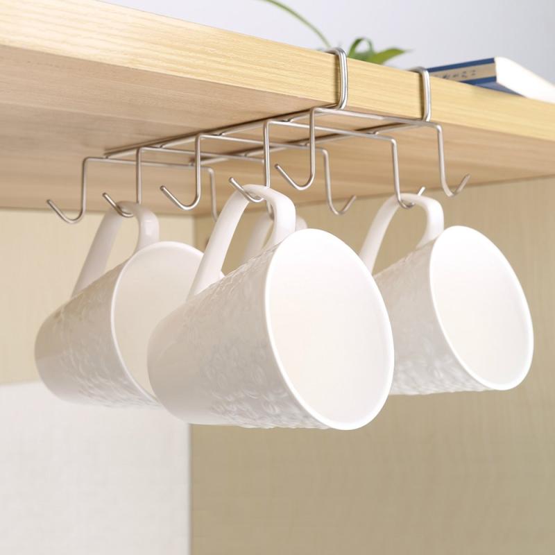 Wellbeingjp カップハンガー 戸棚下 ラック ステンレス製 食器棚収納 ティーセット10コップ 穴あけ・ネジ止め不要 キッチン収納ラック(幅16x長さ27.5x高さ7.5cm)