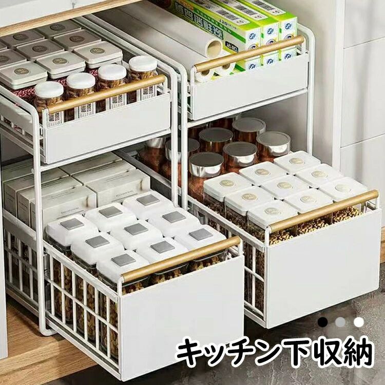 シンク下収納 ラック キッチン収納棚 キッチン収納シンク下 引き出し スライド 2段式 大容量 隙間収納ラック ステンレス製 調味料入れ 調味料置き 簡単組立 洗面台 省スペース