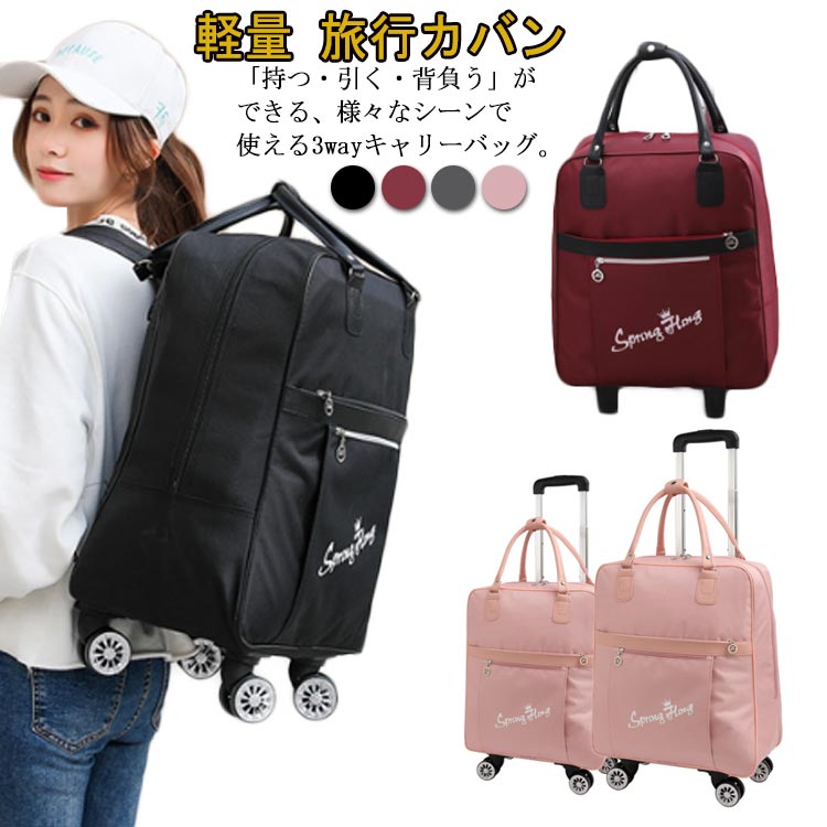 2way キャリー付きバッグ キャリーバッグ トートバッグ 大容量 防水 撥水加工 軽量 折りたたみ 収納便利 省スペース お買い物カート スーツケース 機内持ち込み 旅行 1泊 2泊