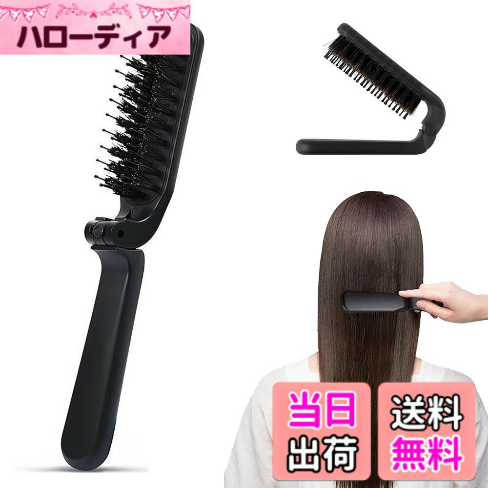 【送料無料】ヘアブラシ 櫛 くし ヘアブラシ 折りたたみ ヘアブラシ 静電気防止 携帯用ブラシ 髪質改善 つやサラ美髪 男性 女性 すべての髪質に合う 色:ブラック