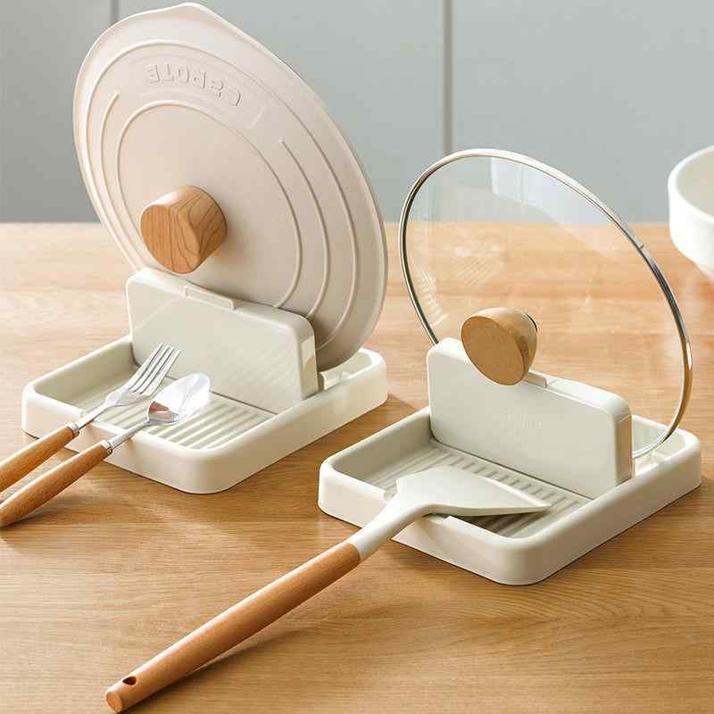鍋蓋スタンド キッチン 卓上 自立式 蓋置き お玉置き ヘラ置き 菜箸置き 折りたたみ 多機能 省スペース プラスチック製 オフホワイト 収納ラック シンプル モダン