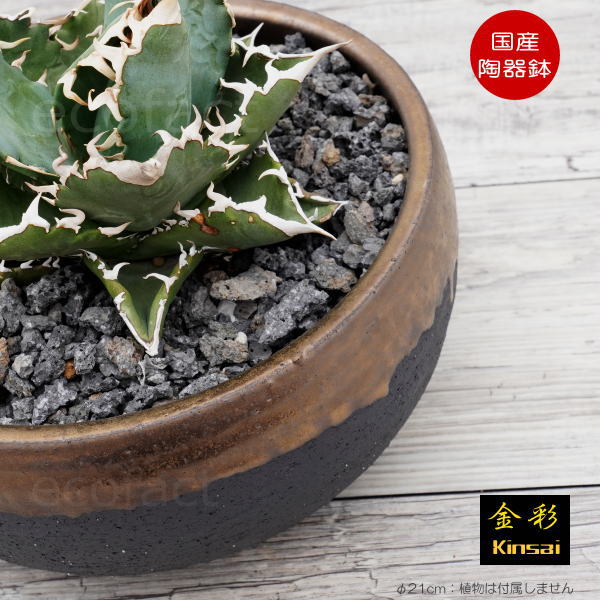 植木鉢 おしゃれ 陶器鉢 7号 室内 底穴あり 丸浅(大)φ21cm 金彩 黒 ゴールド ブラック かみ山陶器 信楽焼 プランター 園芸鉢 アガベ サボテン 多肉植物 塊根植物 コーデックス