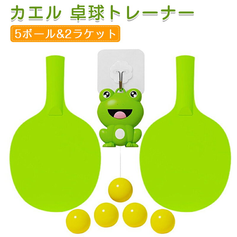 カエル 卓球トレーナー ハンギング ポントレーナー キット 5ボール 2ラケット 調節可能 屋内 屋外 練習小道具 視覚運動 子供用 おもちゃ 5ボール 2ラケット カエル
