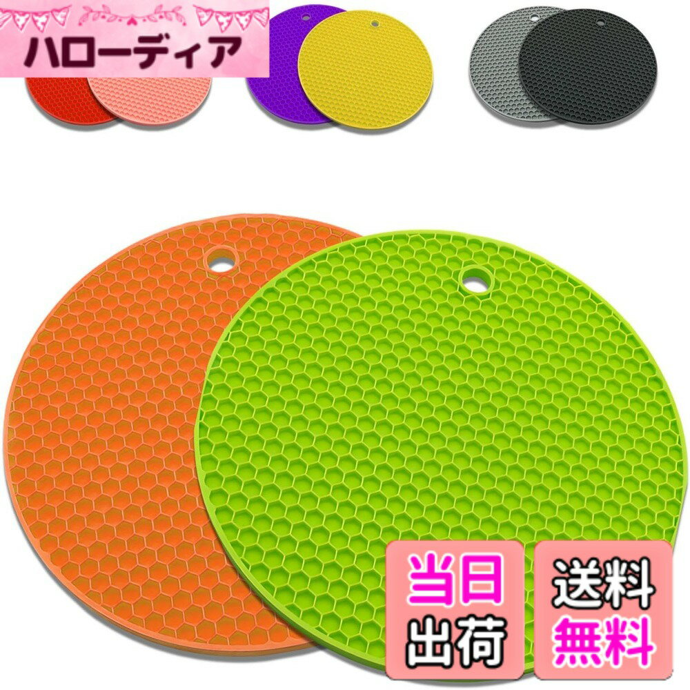 ] 壁に掛けられ [ キッチン用品 滑り止め 柔軟 鍋敷き シリコン製 (グリーン) 北欧風デザイン2個入り プレースマット 防水 厚型 丸型 耐熱鍋敷き 大きい 24 断熱パッド