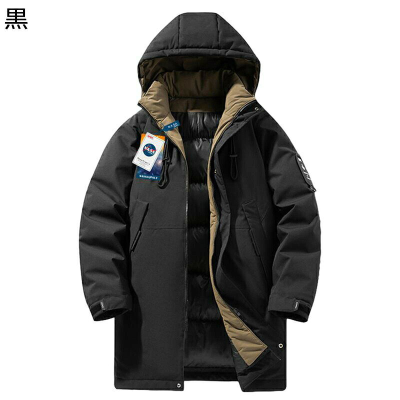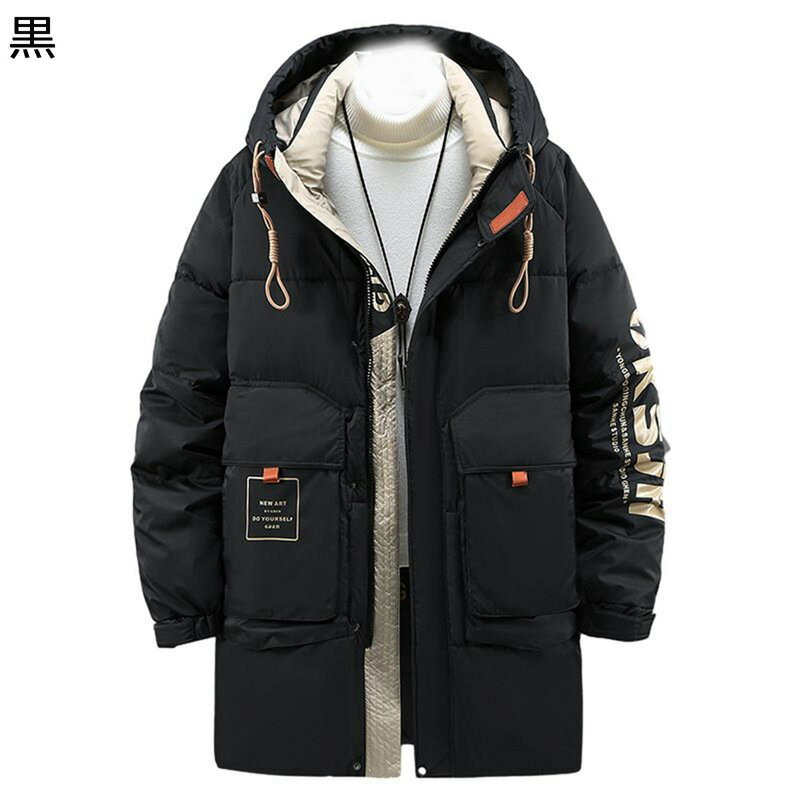 秋冬 コーデ メンズ 服 シンプル ファッション オシャレ 大人 かっこいい 大きいサイズ ストリート 紳士服 ミドル丈 ダウン ジャケット ハイエンド 厚手 フード付き ウィンタージャケット