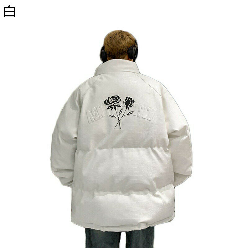メンズ 中綿ジャケット 花柄 花飾り ワニ柄 PUレザー ウィンタージャケット 大きいサイズ ショート丈 綿入れ フライトジャケット 立ち襟 ジッパー付き アウター ポケット 長袖 冬 男性 お洒落