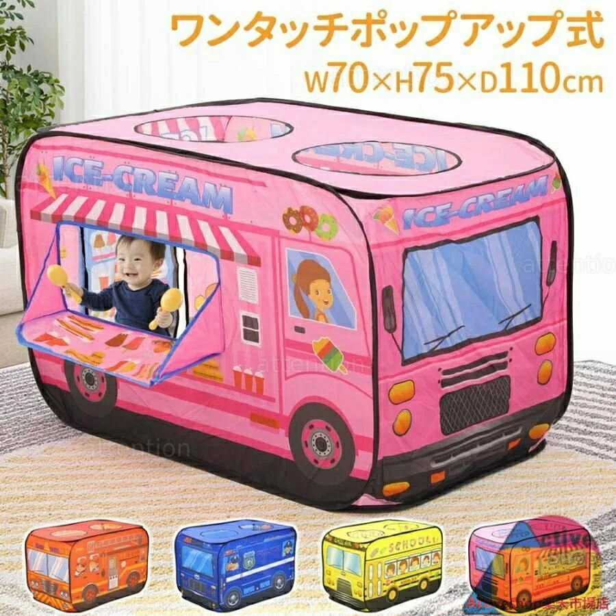 キッズテント 子供用テント 室内用キッズテント プレイハウス 室内 折りたたみ 女の子 男の子 消防車 パトカー アイスクリーム屋さん スクールバス 収納袋付 おしゃれ 秘密基地 知育玩具