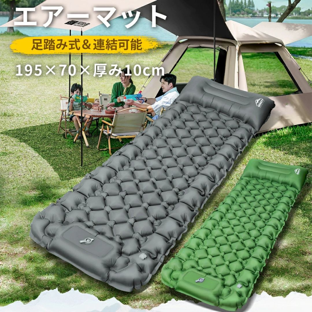 エアーマットGEKETY【約10CM厚さ】キャンプマット足踏み式無限連結可能枕付きエアマットキャンプ防災車中泊厚手軽量コンパクト防水防潮持ち運び便利簡単収納収納袋付き