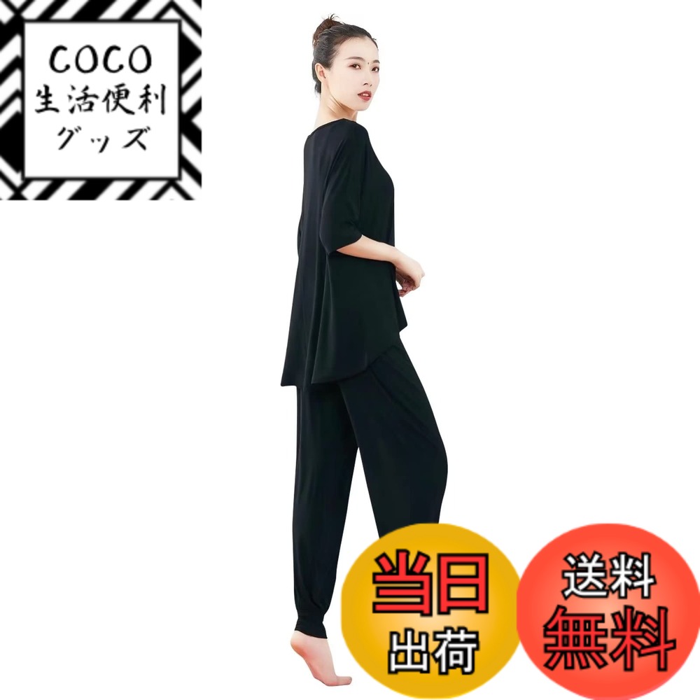 【送料無料】[エンプティオ] 上下セット トレーニングウェア トップス レディース 七分袖 ジョガー ジョギング スエット 色:ブラックジェット/ブラック、サイズ:L