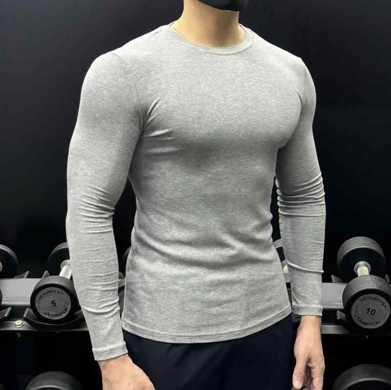 Tシャツ 男性用 スポーツ ランニング トレーニングウェア 高弾性 吸湿速乾 長袖 トップス 薄手 接触冷感 春秋 冬 ポリエステル 無地 青 ブルー系 グレー系 カーキ オフホワイト