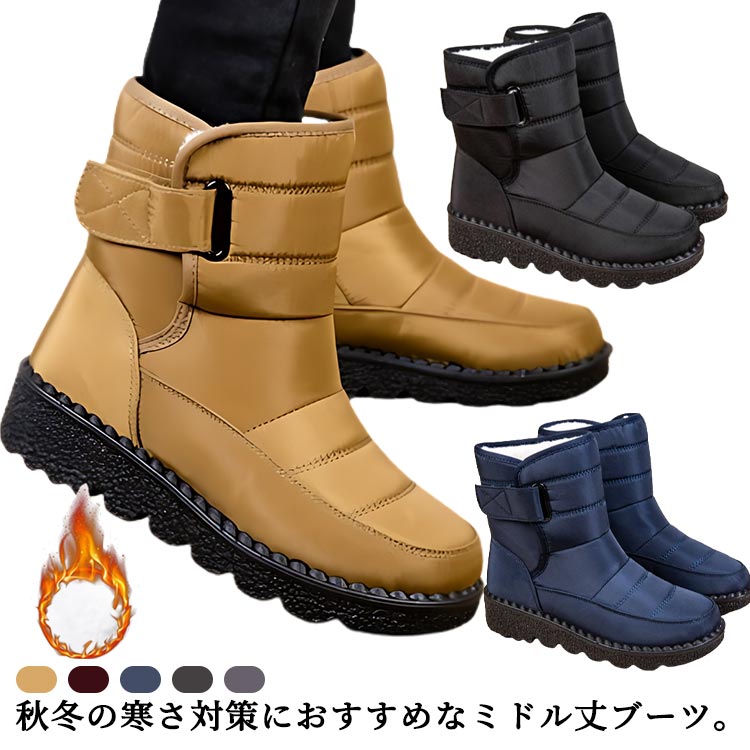スノーブーツ レディース スノーシューズ 撥水 ショートブーツ ミドル丈 裏ボア ウインターブーツ 防寒靴 大人用 アウトドア ブーツ 裏起毛 ボア 冬用 雪靴 スキー 自転車 雪遊び 大きサイズ