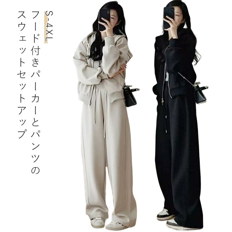 セットアップ レディース 春秋 スウェットセット スポーツウェア 上下セット ロング丈スカート パーカー 運動着/部屋着 運動会 ジャージセットアップ ルームウェア トレーニングウェア