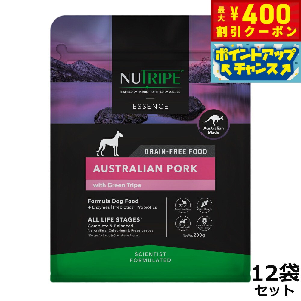 【店内ポイント最大42倍!4月1日!】ニュートライプ GFドライ ドッグ ポーク with グリーントライプ 200g×12袋【送料無料】 グレインフリー 穀物不使用 犬 ドッグフード 無添加