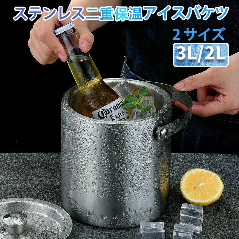 アイスバケット 蓋付き 二重断熱設計 真空断熱ステンレス製 3L 2L 大型魔法瓶 ワインクーラー 保冷用 ビール氷 溶けない おしゃれでコンパクト 持ちやすい アイスペール
