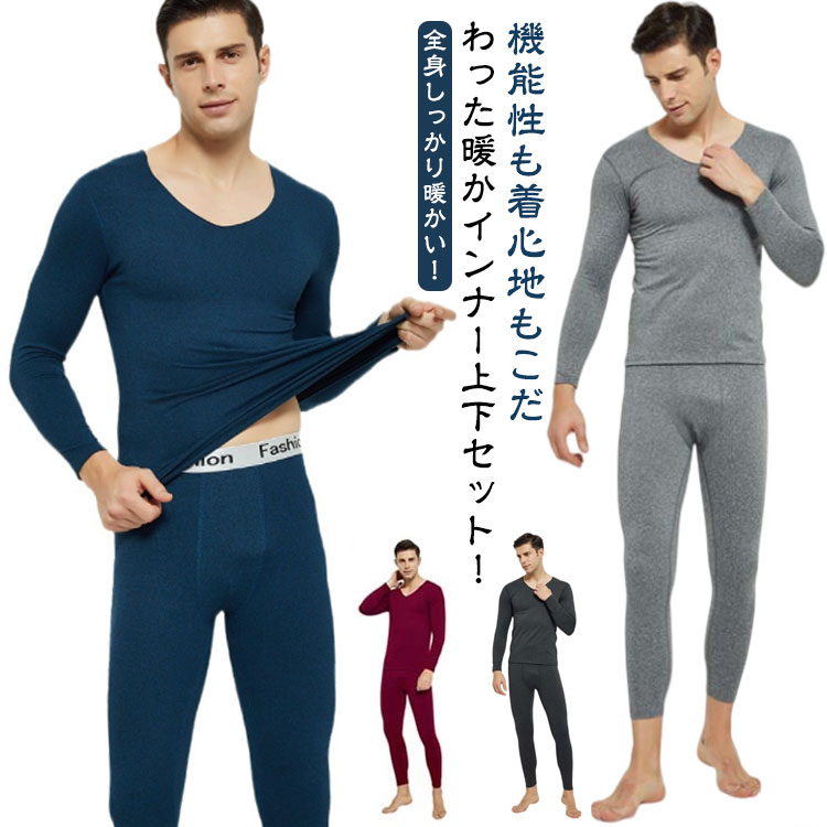 極暖インナー 上下セット 男性用 裏起毛ヒートテック 発熱保温 防寒肌着 ストレッチロングパンツ 長袖アンダーシャツ 厚手裏フリース ゆったり無地 冷え対策 秋冬用 冬用 極暖