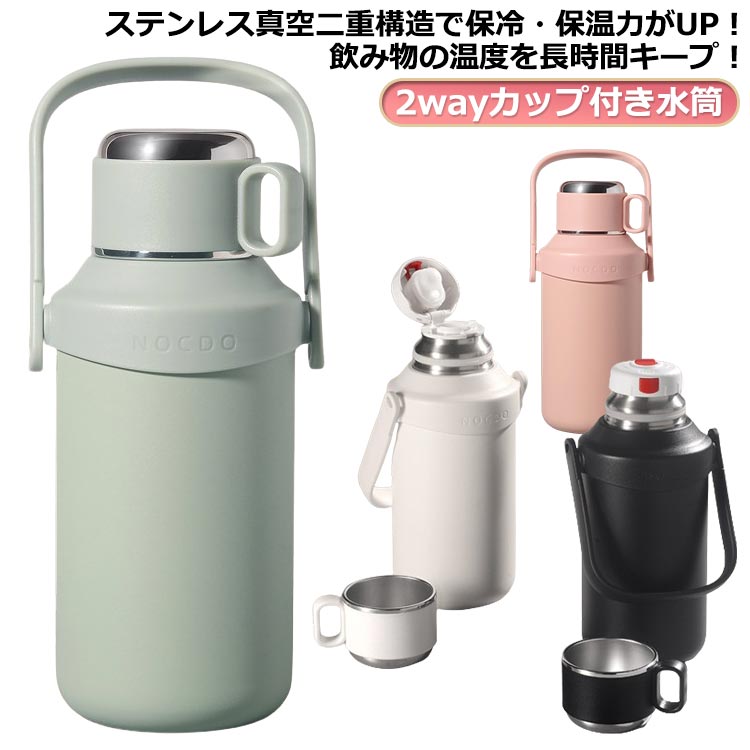 タンブラー ストロー付き 水筒 大容量 ウォーターボトル 真空断熱 保温 保冷 ステンレスボトル 広口 直飲み 蓋付き アウトドア 取っ手付き 持ち運び こぼれない