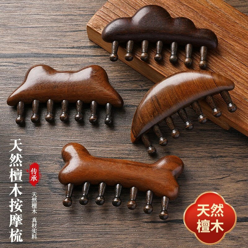 コーム 緑檀 玉檀木 香木 天然木製 粗目 細目 兼用 持ち手付き 頭皮ケア 頭皮マッサージ 美髪ケア ヘアブラシ 静電気防止 絡まない サラサラ髪 ロングヘア対応