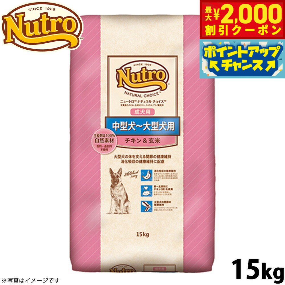 【最大2000円OFFクーポン!&店内ポイント最大52倍!本日限定!】ニュートロ ナチュラルチョイス ドッグフード 中型犬〜大型犬 成犬用 チキン&玄米 15kg 無添加 犬送料無料 [NC-AD]