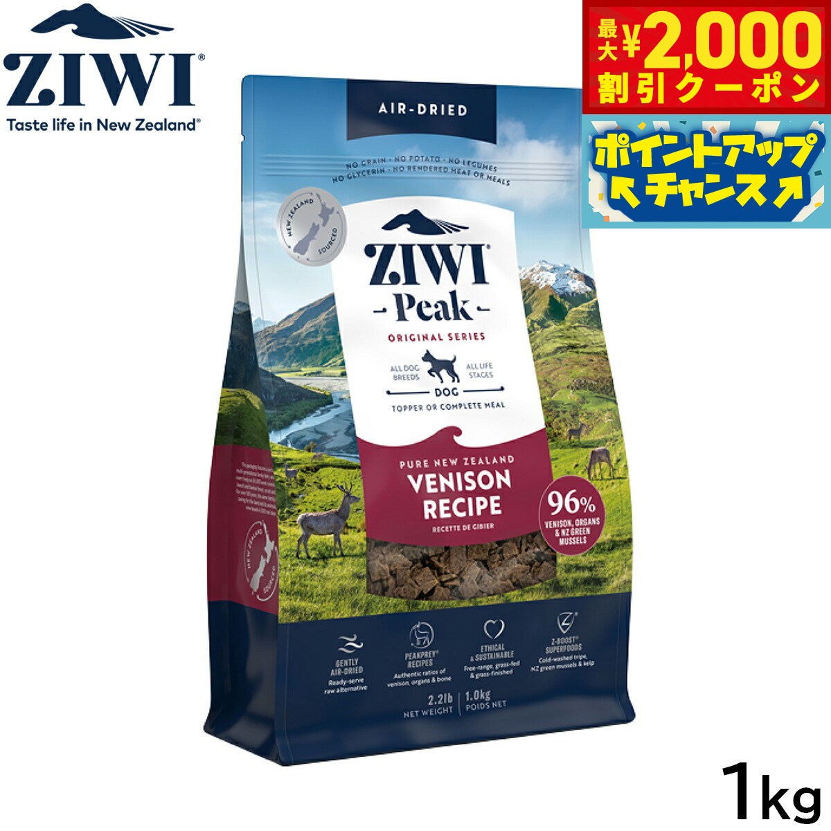 【最大2000円OFFクーポン!&店内ポイント最大52倍!本日限定!】ジウィ ZIWI エアドライ ドッグフード ベニソン 1kg【送料無料】 正規品 無添加 ジウィピーク