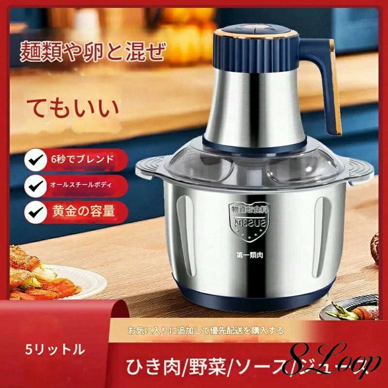 【中古】【未使用】Deronderフードプロセッサー5L大容量 チョッパー 電動500W 多機能電気肉挽き器 高速拌のための高効率モーター 高速チャーン 高温耐性 肉?机 ス