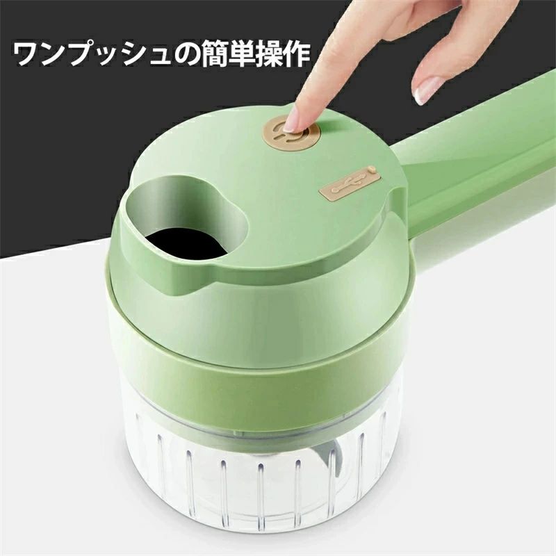 フードプロセッサー 野菜カッター チョッパー 小型 電動 スライサー 4 1 多機能ハンドヘルド電気野菜カッター 多機能野菜フルーツスライサー ひき肉機 ブレンダー 皮むき クリーニングブラシ付き