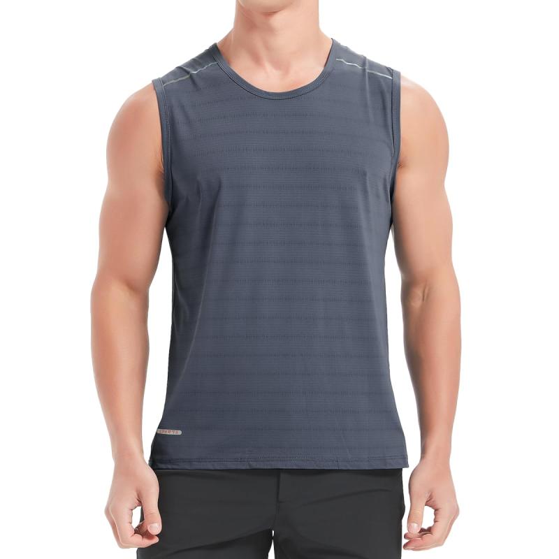 【送料無料】[THREEGUN] ノースリーブ メンズ タンクトップ 冷感 ストレッチ tシャツ トレーニングウェア ランニングシャツ ドライ スポーツシャツ 吸湿速乾(グレーL=日本サイズS)