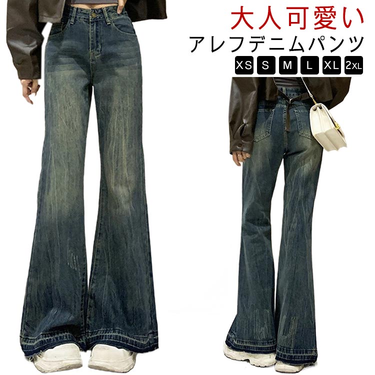 デニムパンツ ジーンズ ジーパン ベルボトムジーンズ ブーツカットジーンズ ウォッシュ加工ジーンズ ワイドレッグパンツ カジュアル 通学 アウトドア スポーツ ホームウェア レディース