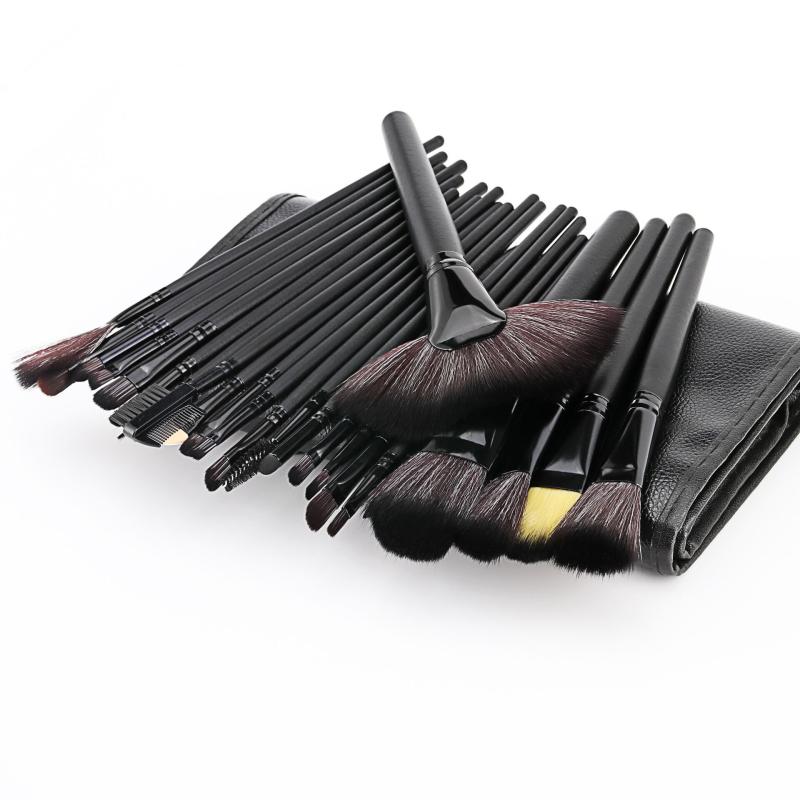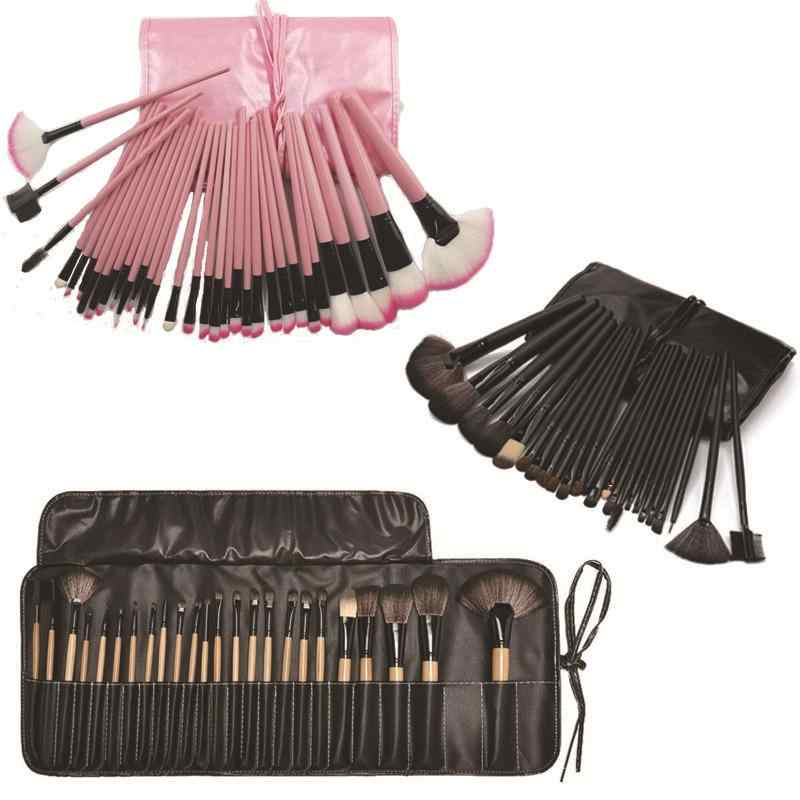 メイクブラシセット プロ仕様 化粧筆 32本 フルセット 高級人工毛 木製ハンドル 携帯用 PUレザーケース付き 初心者 メイクアップツール ブラック ピンク ウッドカラー