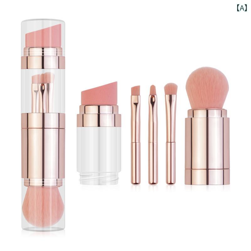YANHUILAYメイクブラシ携帯用【5本セット】パウダーブラシ化粧筆アイメイクブラシシリコンリップブラシ化粧ブラシセットミニ持ち運び便利柔らかいて毛が密集していて粉含み力が良い多…