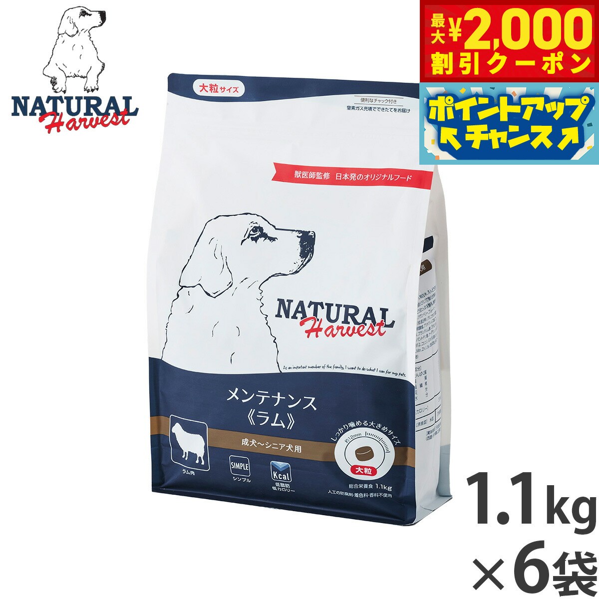 【最大2000円OFFクーポン!&店内ポイント最大52倍!本日限定!】ナチュラルハーベスト ドッグフード メンテナンス ラム 1.1kg×6袋セット【送料無料】 無添加 犬用 日本専用