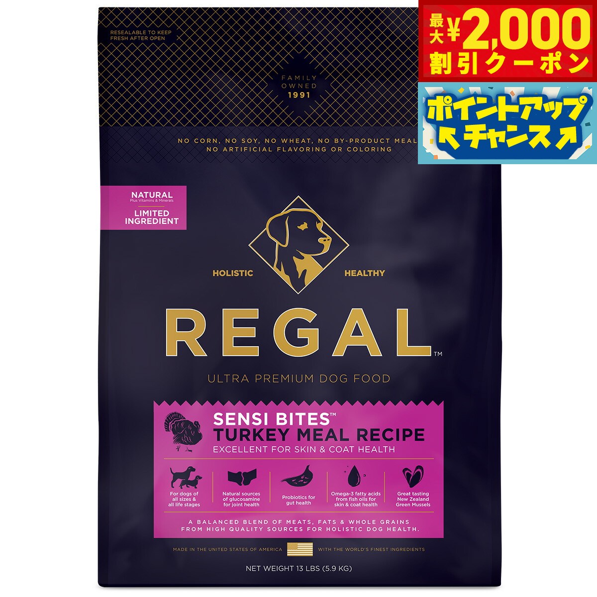 【最大2000円OFFクーポン!&店内ポイント最大52倍!本日限定!】リーガル ドッグフード センシバイツレシピ ターキー 5.9kg 無添加 ヒューマングレード