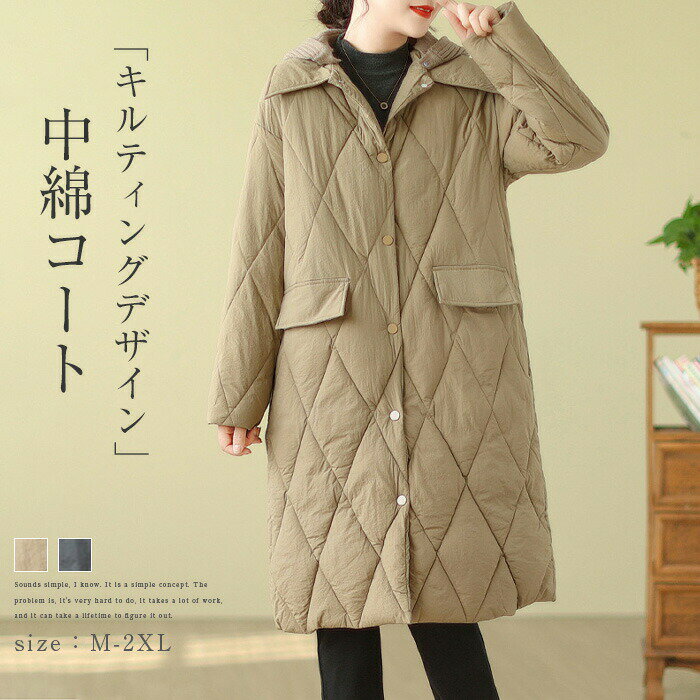 キルティングコート 防寒 ジャケット コート 中綿コートアウター フード付き 裏ボア キルティング 無地 冬 暖かい シンプル カジュアル おしゃれ 50代 40代