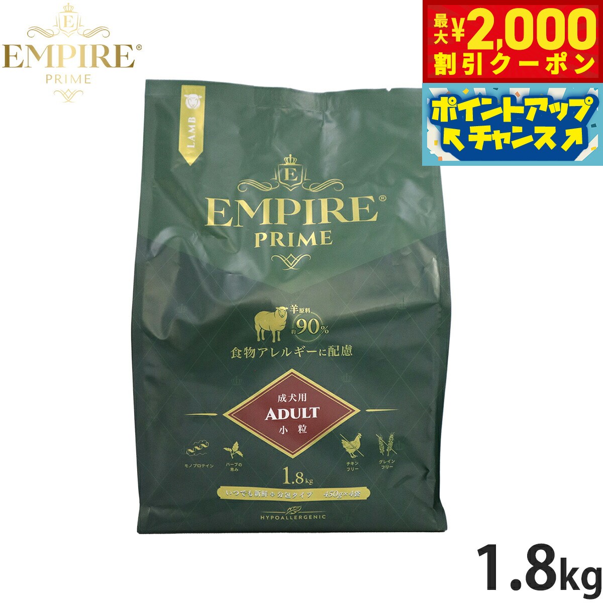 【最大2000円OFFクーポン!&店内ポイント最大52倍!本日限定!】エンパイア EMPIRE ドッグフード プライム アダルト 小粒 1.8kg 無添加 グレインフリー 穀物不使用 犬