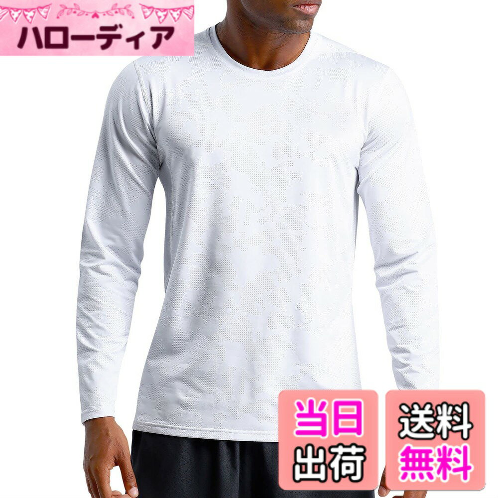 【送料無料】[THREEGUN] トレーニングウェア 長袖 tシャツ メンズ ドライ ロングtシャツ スポーツシャツ 長袖シャツ 吸湿速乾 ランニングシャツ 色:ホワイト、サイズ:2XL