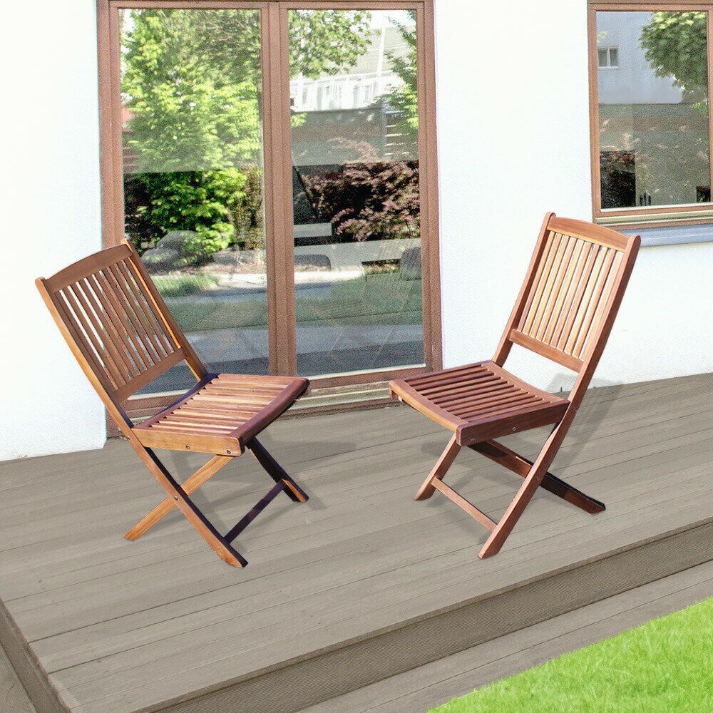 【送料無料】ガーデン チェア 折りたたみ 椅子 2脚セット 幅約48cm ブラウン 木製 アカシア製 完成品 ガーデンファーニチャー アウトドア用品 レジャー用品 キャンプ BBQ【代引不可】