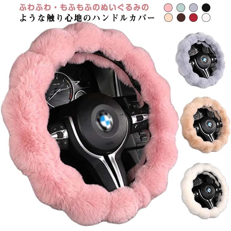 【楽天スーパーSALE★限定4H 20%OFF】ハンドルカバー もこもこ ふわふわ ステアリングカバー ベロア 防寒 フェイクファー シンブル 軽自動車 普通車兼用 防寒 おしゃれ 送料無料