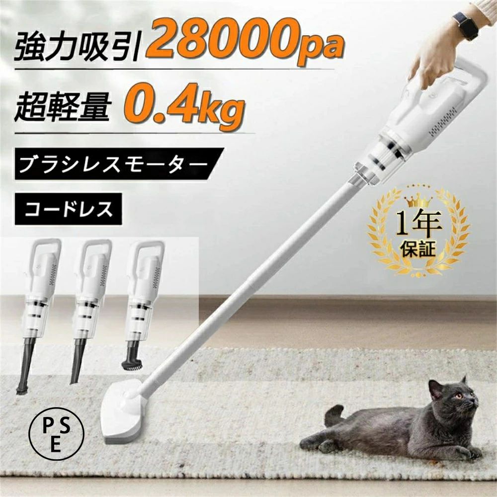 掃除機 コードレス 充電式 サイクロン 28000pa 強力吸引 軽量 0.4kg 静音 小型 スティック型 ハンディ ハンディー クリーナー コンパクト 省エネ おすすめ