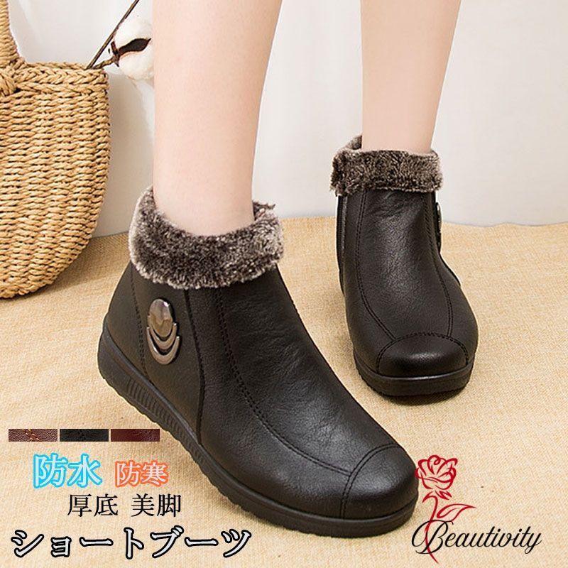 【送料無料】スノーブーツ ショートブーツ レディース 滑らない 防水 おしゃれ ローヒール きれいめ 大人 冬 ブーツ 歩きやすい 黒 暖かい 軽い 防寒ブーツ 暖かい 雨 雪