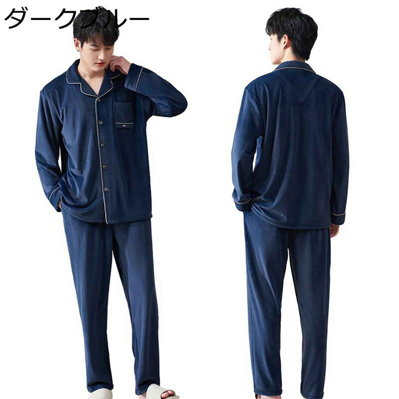 パジャマ フリース メンズ 寝間着 二点セット 快適 マイクロファイバー もこもこ 保温 秋冬 大きいサイズ ルームウェア ふわふわ 前開き ゆったり 家着 ホームウェア 快眠 ネルパジャマ 冬用
