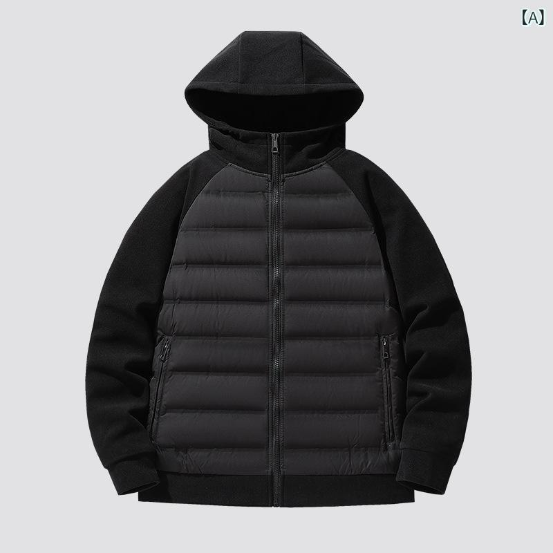 ダウンジャケット 男女兼用 フード付き ニット 切り替え 軽量 薄手 アウトドア スポーツ 防寒 保温 洗える ホワイトダックダウン ポリエステル カジュアル デイリーユース 秋冬 フルジップ