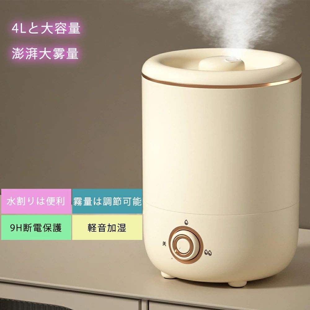 加湿器 大容量 4L 超音波式 卓上 上から給水 小型 おしゃれ オフィス プレゼント 寝室 業務用 空焚き防止 デジタル表示 乾燥対策グッズ 子供部屋 空気清浄機 LEDライト付き USB給電式