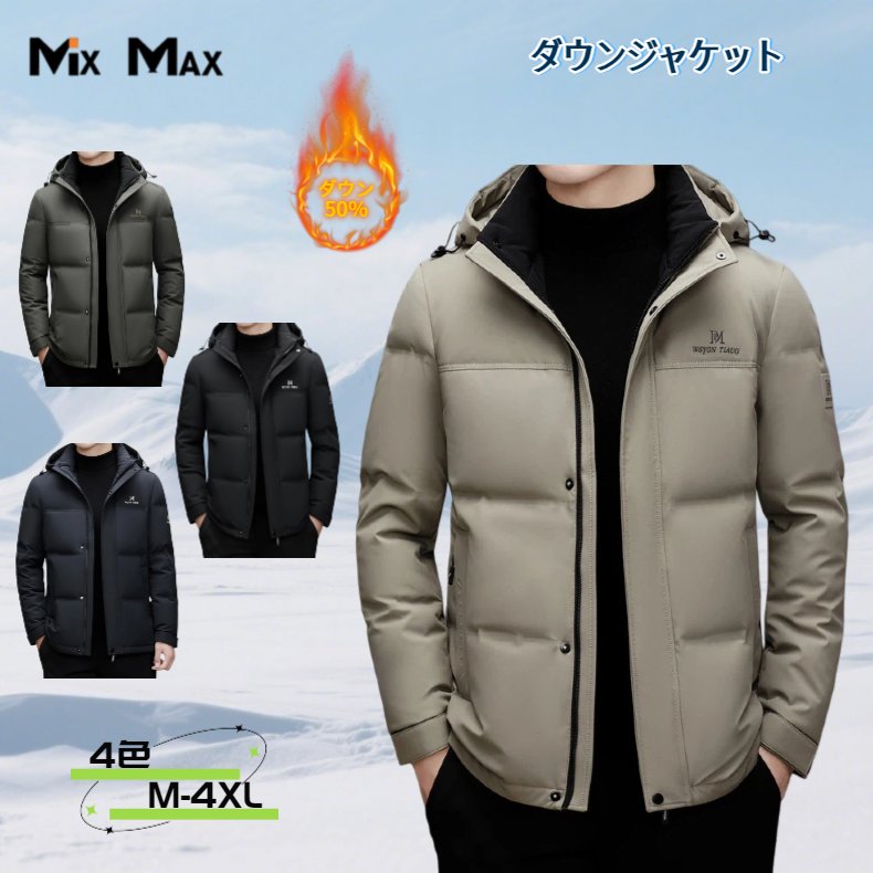 メンズ ダウンコート 防寒 ダウンジャケット ハイネック アウター コート 男性 ボリュームカラー フード付き 冬服 厚手 秋冬 暖かい 大きサイズ アウトドア 冬物 送料無料